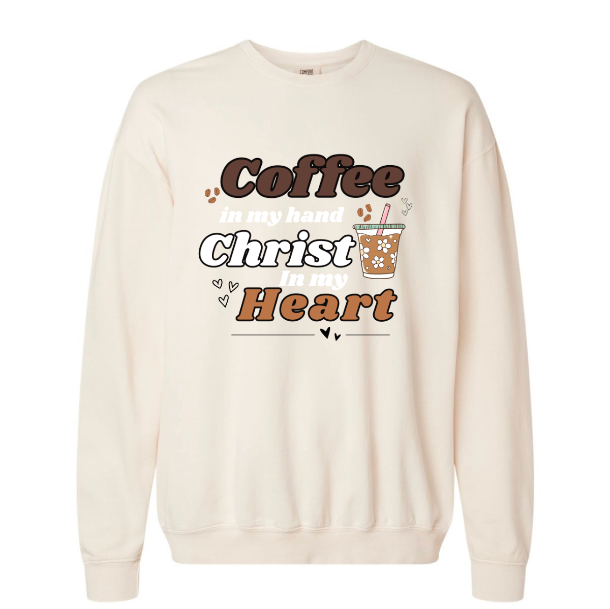 ☕✨ Coffee in My Hand, Christ in My Heart – Christian Cozy Crewneck ✨🧡