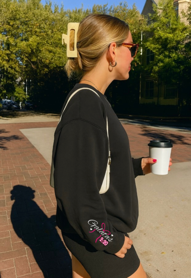Featuring a feminine pink bow cross and heartfelt details, this sweatshirt is perfect for any woman who wants to express her faith with style and purpose.