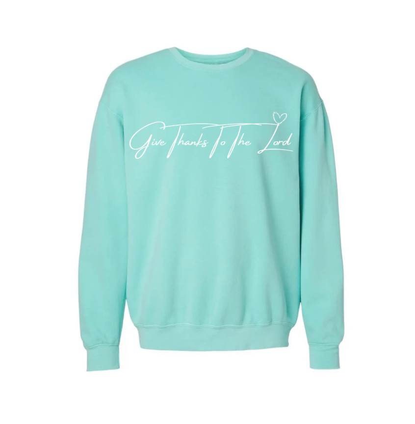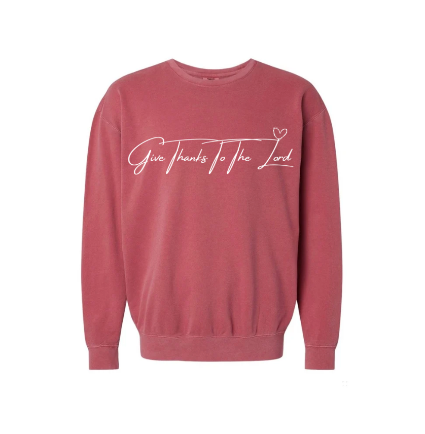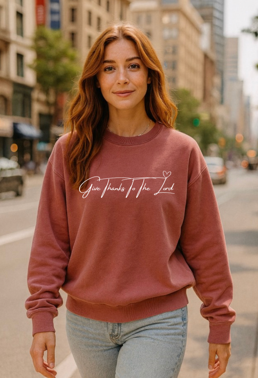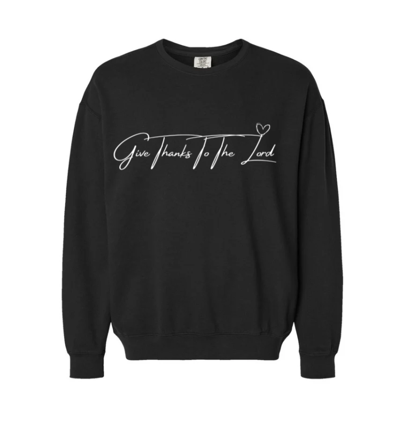 Featuring a minimalist script that reads “Give Thanks To The Lord” with a sweet heart detail, this piece is the perfect expression of gratitude and faith—all on one of the most loved premium sweatshirts.