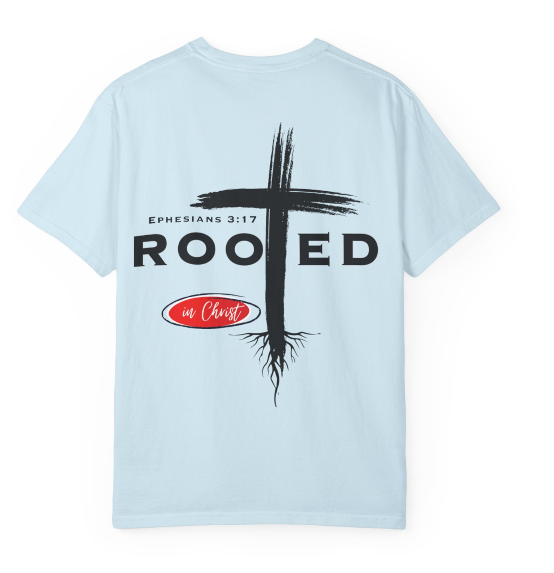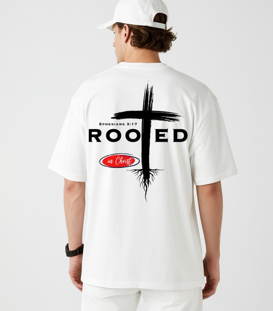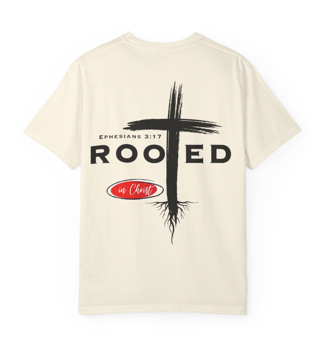 ✝️🌱 Rooted in Christ – Bold Christian Back Graphic Tee