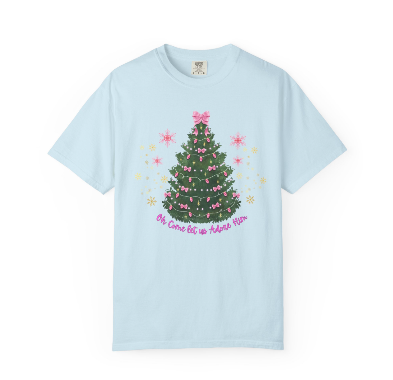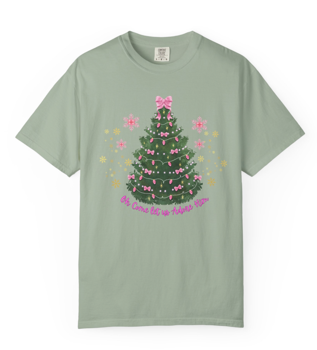 🎀🎄 Oh Come Let Us Adore Him – Girly Christmas Tree Tee ✨💗